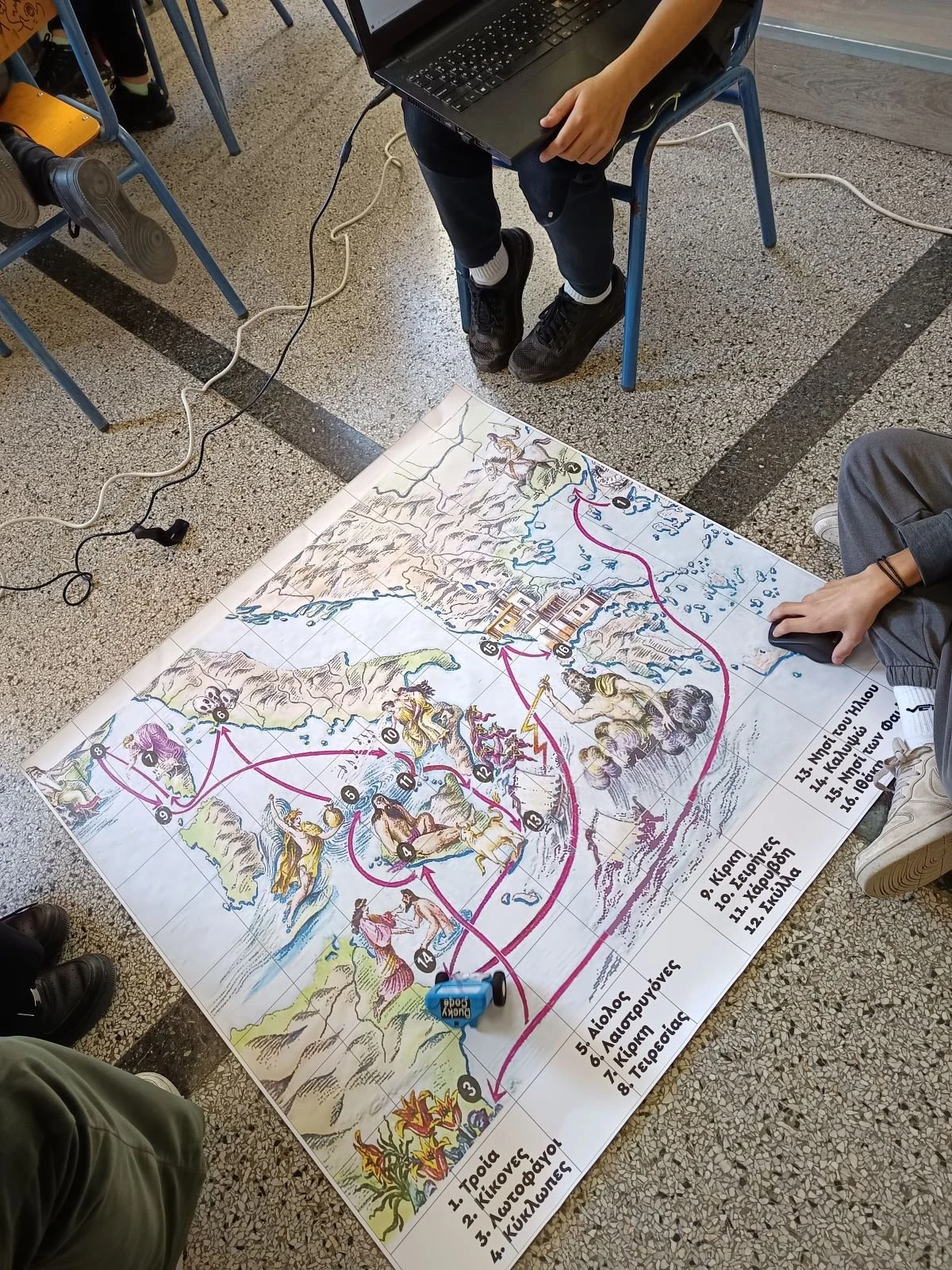 Στο πλαίσιο της διδασκαλίας, οι μαθητές προγραμματίζουν το DuckyCode ώστε να «αφηγηθεί» αποσπάσματα από την «Οδύσσεια». Στη συνέχεια, καλούνται να θυμηθούν πληροφορίες από την αφήγηση, να δημιουργήσουν τις δικές τους εναλλακτικές ιστορίες και να τις παρουσιάσουν με τη βοήθεια του ρομπότ. Παράλληλα, οργανώνουν το «ταξίδι» του Οδυσσέα πάνω σε έναν ειδικά σχεδιασμένο χάρτη, ξεπερνώντας προκλήσεις και εμπόδια.