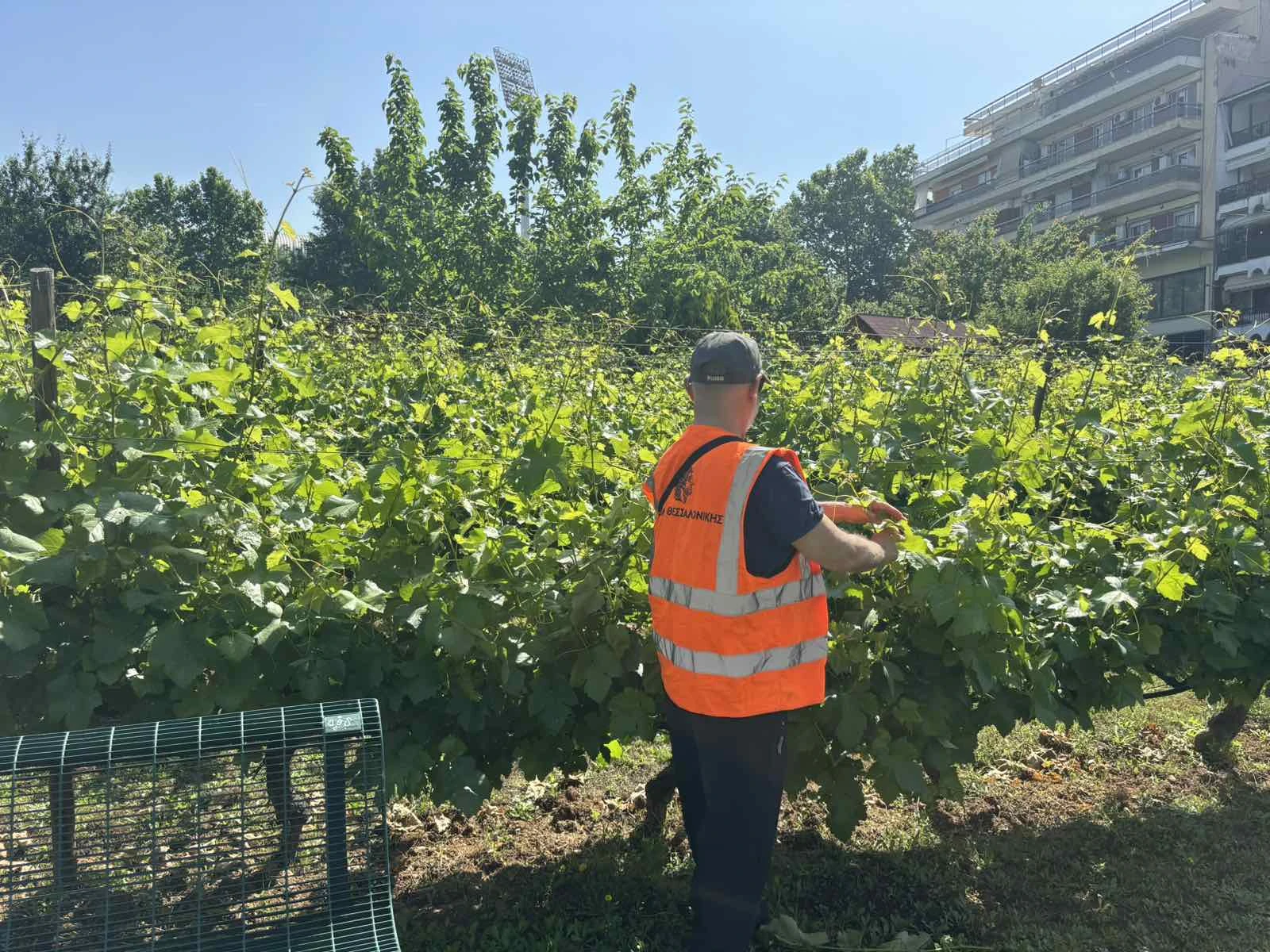 Κρυμμένος πίσω από τις εξέδρες και υπό το βλέμμα των ψηλών φωταγωγών του Καυτανζόγλεiου Σταδίου, ανάμεσα σε ψηλά κτίρια και πολυκατοικίες, βρίσκεται ένας μικρός πράσινος πνεύμονας της Θεσσαλονίκης που αποπνέει τον αέρα της υπαίθρου. Ο λόγος για τον αστικό αμπελώνα του Δήμου Θεσσαλονίκης, έναν χώρο 8 στρεμμάτων που από το 2013, όταν και δημιουργήθηκε, συνδυάζει αμπελοκαλλιέργεια, λαχανόκηπο και οπωρώνα και παραμένει, ακόμη και σήμερα, άγνωστος στους περισσότερους Θεσσαλονικείς.