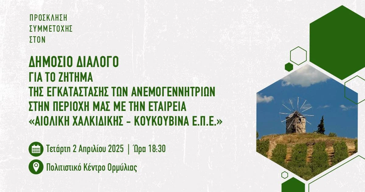 Αντιλαμβανόμενοι την αγωνία των τοπικών κοινωνιών και πριν ληφθεί οποιαδήποτε απόφαση, από το Δημοτικό Συμβούλιο επί της ΜΠΕ, να είστε σίγουροι ότι θα υπάρξει εκτενής ενημέρωση σε όλους τους κατοίκους, τόσο της Ορμύλιας όσο και του Πολυγύρου, με πρώτη συνάντηση στην Ορμύλια την Τετάρτη 2 Απριλίου 2025 και ώρα 18:30 στο Πολιτιστικό Κέντρο της Ορμύλιας. `