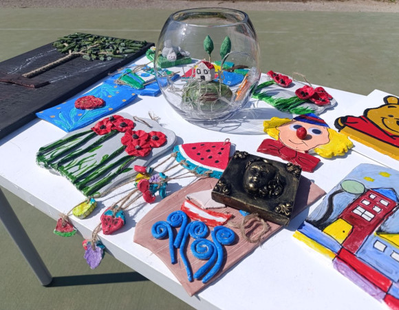 Στο χώρο της εκδήλωσης φιλοξενήθηκε επίσης έκθεση των εικαστικών των παιδικών τμημάτων της Λέσχης Πολιτισμού «Φιλότεχνον».
