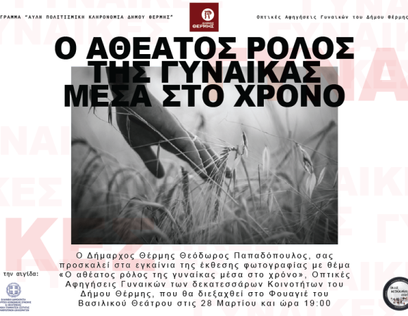 Ο Δήμος Θέρμης παρουσιάζει την έκθεση φωτογραφίας με τίτλο "Ο Αθέατος Ρόλος της Γυναίκας Μέσα στον Χρόνο", στο πλαίσιο του προγράμματος για την «Άυλη Πολιτιστική Κληρονομιά του Δήμου Θέρμης», σε καλλιτεχνική επιμέλεια Greek Instagramers Events. Η έκθεση αποτελεί μια μοναδική συλλογή οπτικών αφηγήσεων που φωτίζουν τη ζωή και τις εμπειρίες των γυναικών στις δεκατέσσερις κοινότητες του Δήμου.