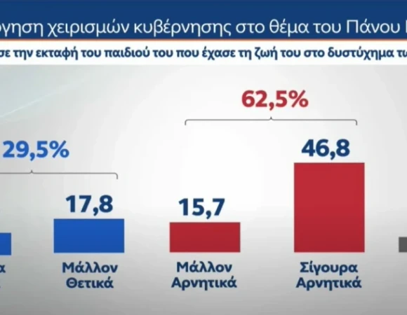 Στην ερώτηση για την αξιολόγηση των χειρισμών της κυβέρνησης στο θέμα του Πάνου Ρούτσι, το 62,5% την αποτιμά αρνητικά ή μάλλον αρνητικά.