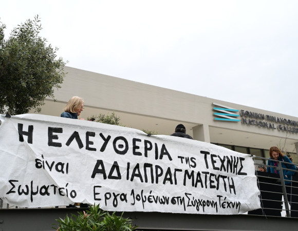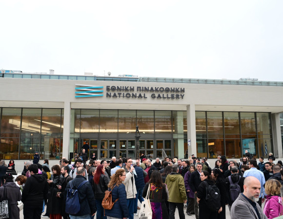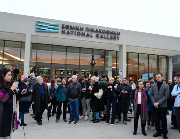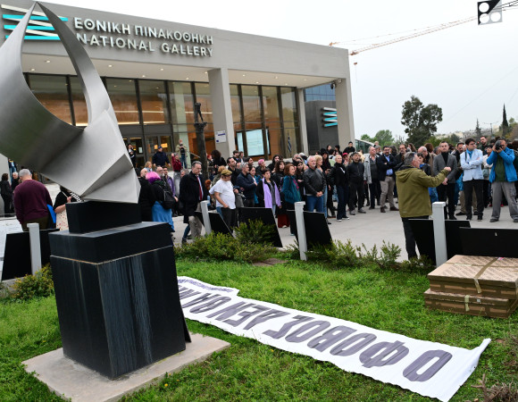 Συγκέντρωση διαμαρτυρίας για την επαναφορά των έργων τέχνης που είχε βανδαλίσει ο βουλευτής της Νίκης πραγματοποιούν αυτήν την ώρα έξω από την Εθνική Πινακοθήκη πολίτες.