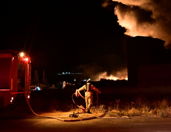 Σύμφωνα με την πυροσβεστική η φωτιά εκδηλώθηκε γύρω στις 20:30 και στο σημείο επιχειρούν 30 πυροσβέστες με 14 οχήματα.