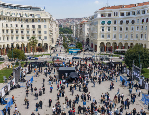 Στα ασπρόμαυρα έχει «ντυθεί» η πλατεία Αριστοτέλους, με αφορμή τα γενέθλια των 100 ετών του ΠΑΟΚ και όσο περνάει η μέρα, όλο και περισσότερος κόσμος δίνει το παρών στην Πλατεία – σήμα κατατεθέν της πόλης.