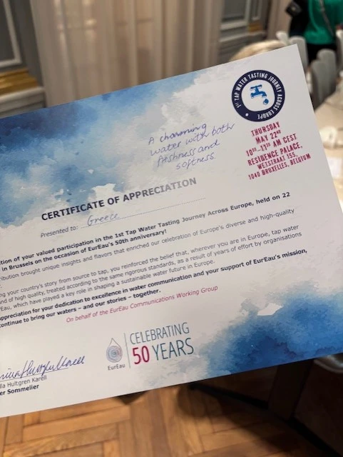 Στην 1η Ευρωπαϊκή Γευσιγνωσία Νερού Βρύσης, στις Βρυξέλλες, με ειδικό σομελιέ νερού συμμετείχε η ΕΥΑΘ μαζί με άλλες 10 χώρες-μέλη της EurEau, της Ευρωπαϊκής Ομοσπονδίας Ενώσεων Εταιρειών Ύδρευσης – Αποχέτευσης.