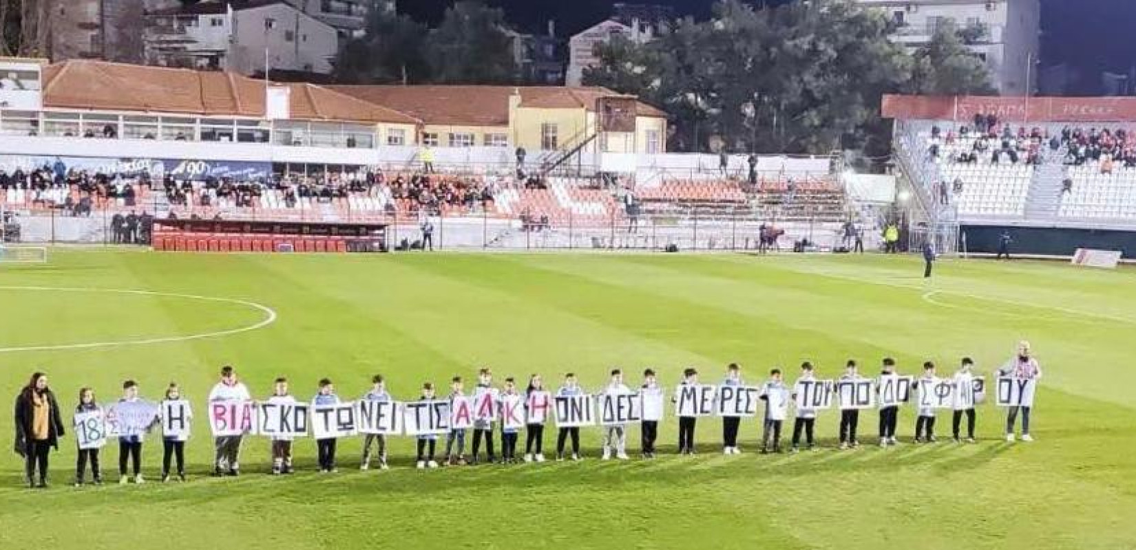 Ο Πανσερραϊκός υποδέχεται στις 19:30 τον Βόλο στο πλαίσιο της 21ης αγωνιστικής, ωστόσο, τις εντυπώσεις έκλεψε πριν από την έναρξη του αγώνα ένα πανό με σύνθημα «Η βία σκοτώνει τις ΑΛΚΗονίδες μέρες του ποδοσφαίρου» που σήκωσαν στο κέντρο του γηπέδου οι μαθητές του 18ου Δημοτικού Σχολείου Σερρών.