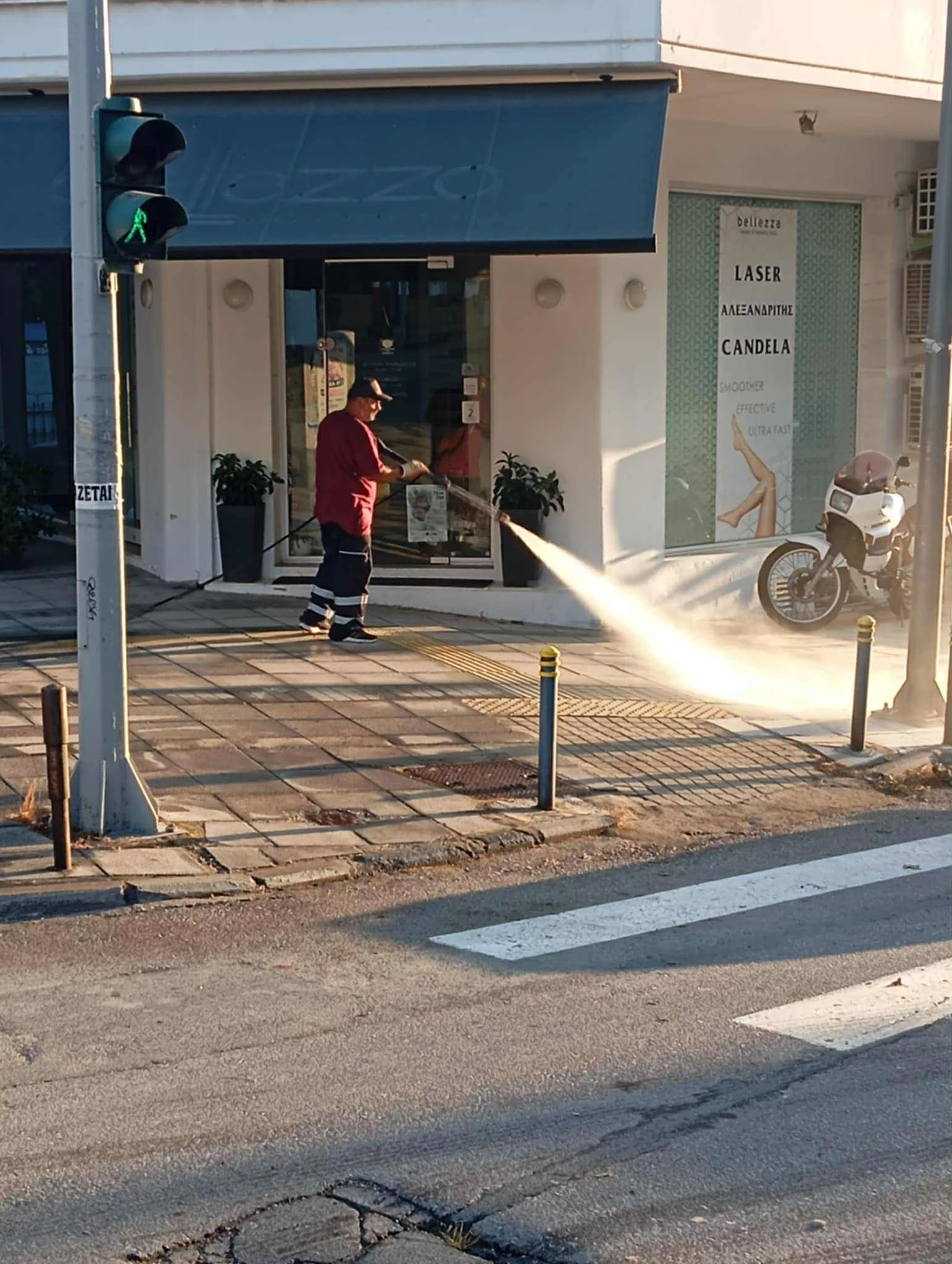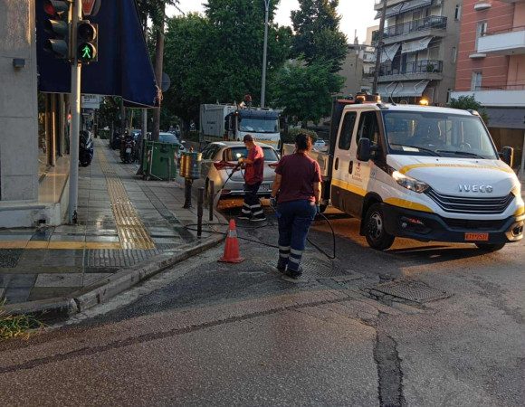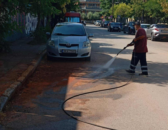 Συνεργεία της Διεύθυνσης Καθαριότητας, εξοπλισμένα με νέα, σύγχρονα και ισχυρά πλυστικά μηχανήματα, πραγματοποιούν συστηματικά, από τις πρώτες πρωινές ώρες, βαθύ καθαρισμό και πλύσιμο πεζοδρομίων, οδών και δημοτικών χώρων, πλατειών και παιδικών χαρών καθώς και πάρκων και άλλων κοινόχρηστων χώρων.