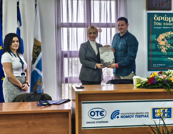 Τους συνέδρους καλωσόρισαν στον Δήμο Δίου-Ολύμπου η Αντιπεριφερειάρχης Πιερίας κυρία Σοφία Μαυρίδου και η αντιδήμαρχος Παιδείας και Τουρισμού του Δήμου Δίου-Ολύμπου, κυρία Σοφία Ζουρζούρα, εκπροσωπώντας τον Δήμαρχο, Βαγγέλη Γερολιόλιο. Παρέδωσαν επίσης στον πρόεδρο της Πολιτιστικής Ένωσης ΟΤΕ κ. Κυριάκο Νικολαΐδη και τον πρόεδρο του Πολιτιστικού Κέντρου ΟΤΕ Νομού Πιερίας κ. Βασίλειο Τασιάκο, από ένα πολυτελές λεύκωμα αφιερωμένο στον Όλυμπο (έκδοση Π.Ε. Πιερίας) και ένα λεύκωμα με την πρώτη φωτογραφική αποτύπωση της ανάβασης στο Μύτικα του ελβετού φωτογράφου Φρεντερίκ Μπουασονά (έκδοση Δήμου Δίου-Ολύμπου).