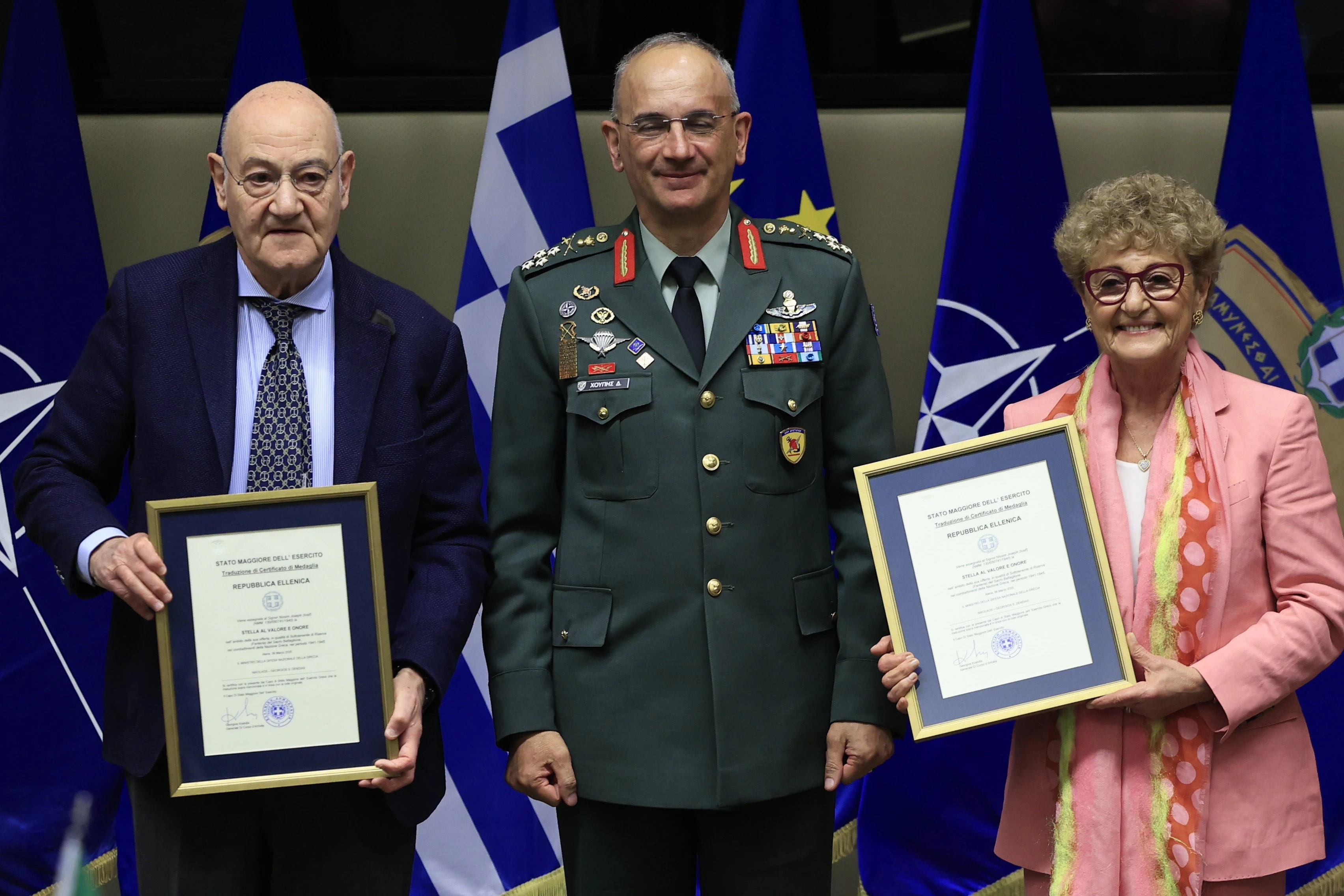 Ο Υπουργός Εθνικής Άμυνας, Νίκος Δένδιας, παρέστη σήμερα, Πέμπτη 27 Μαρτίου 2025, στην τελετή απονομής διαμνημόνευσης «Αστέρα Αξίας και Τιμής» που πραγματοποιήθηκε στην αίθουσα «Ιωάννης Καποδίστριας» του ΥΠΕΘΑ προς τιμήν του Ζιωζέφ Νισσίμ (Joseph Nissim), σε αναγνώριση της προσφοράς του ως Έφεδρου Ανθυπολοχαγού (ΠΖ) του Ιερού Λόχου, κατά το χρονικό διάστημα 1941 - 1945.