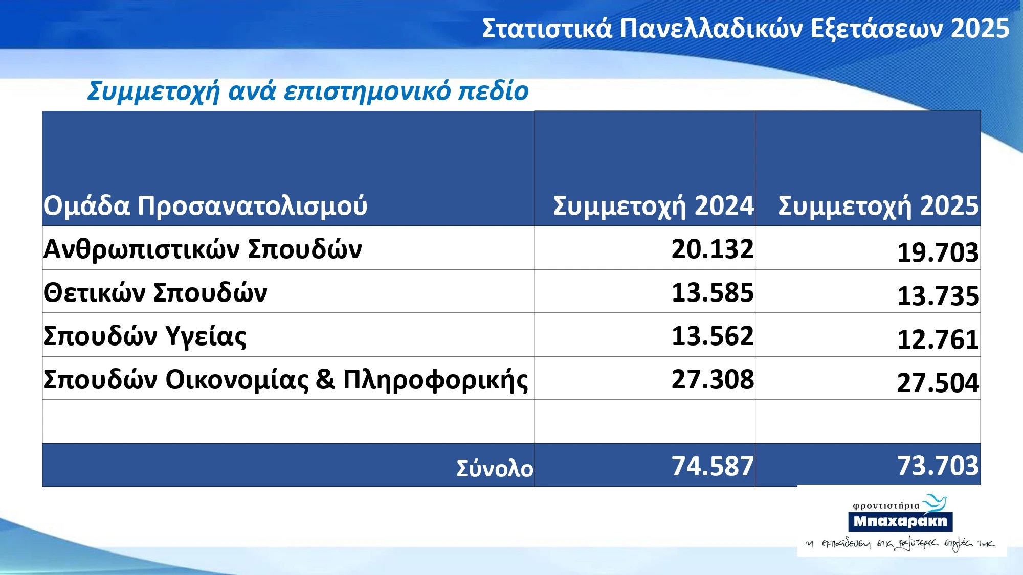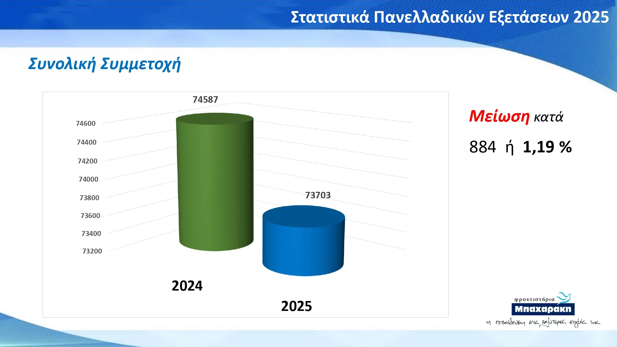 Για αισθητή μείωση των υποψηφίων στο 3ο επιστημονικό πεδίο, κατά 5,9% κάνει λόγο μιλώντας στο emakedonia.gr ο Ιωάννης Μπαχαράκης, διευθυντής σπουδών στα εκπαιδευτήρια «Μπαχαράκη». Εξηγεί πως αυτό σημαίνει ότι μειώνεται η ένταση του ανταγωνισμού στις επιστήμες υγείας. «Η συνολική εικόνα, δεν διαφέρει πολύ την τελευταία τριετία. Βλέπουμε ότι οι Επιτροπές επιλέγουν θέματα τα οποία είναι σωστά δομημένα έχουν κλιμάκωση δυσκολίας και σαφώς, σε διάφορες βαθμολογικές κλίμακες γίνεται και η κατανομή των μαθητών, ανάλογα με το επίπεδο προετοιμασίας τους», περιγράφει.