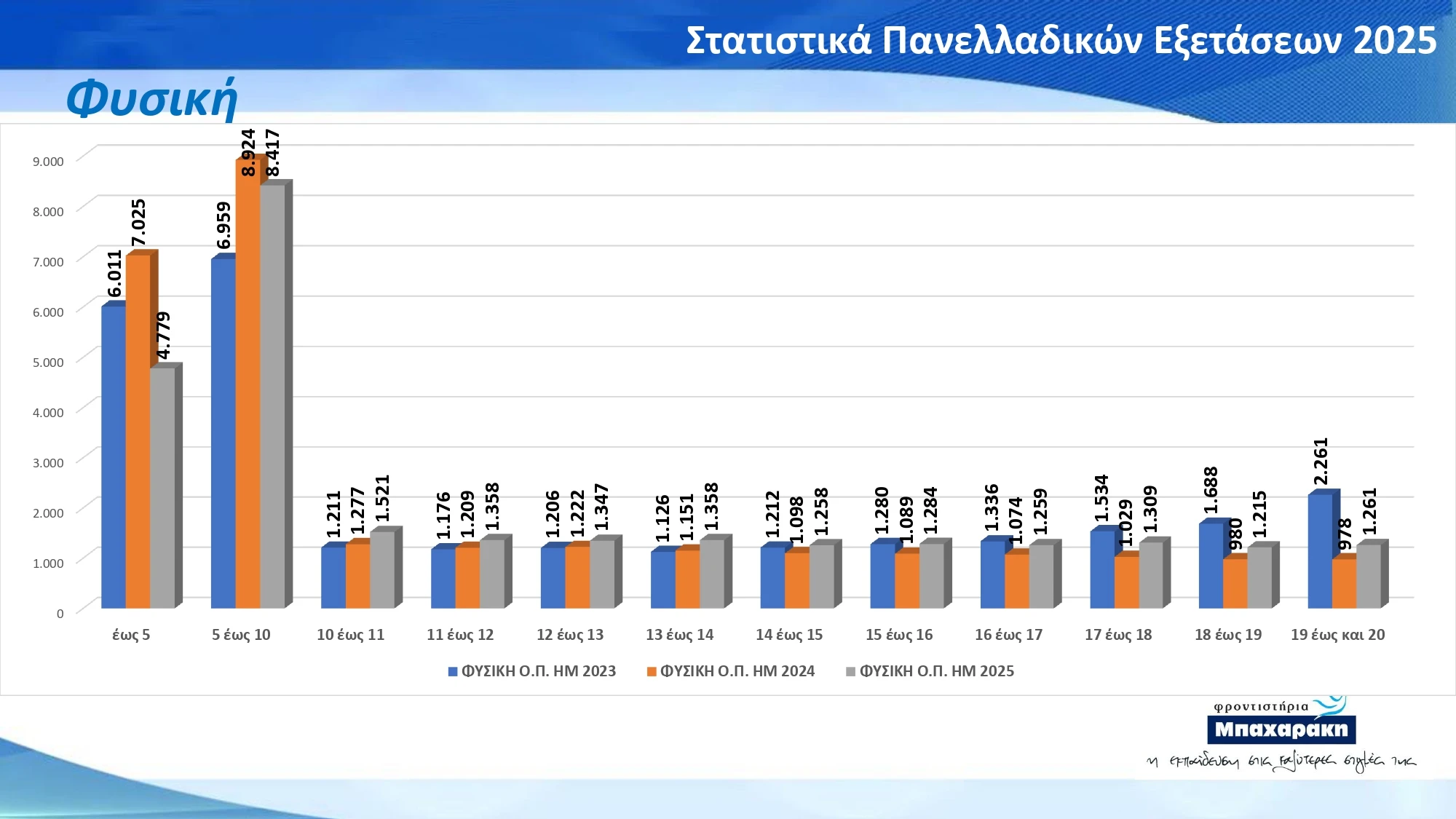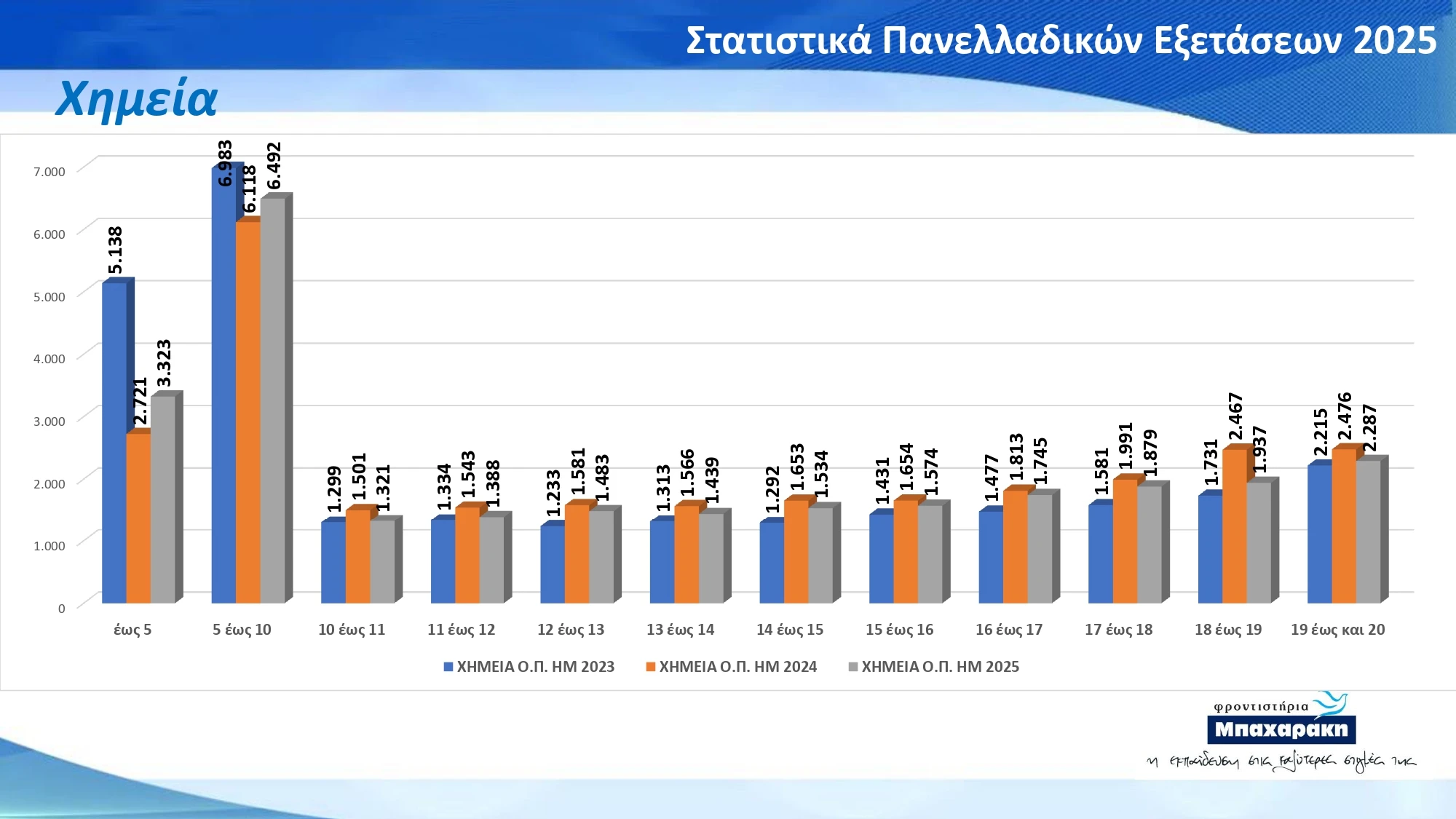Καλύτερες από τις περσινές ήταν οι επιδόσεις των διαγωνιζόμενων στη Φυσική, χαμηλότερα στις βαθμολογικές κλίμακες ήταν η Χημεία, στις υψηλές κλίμακες έγραψαν καλύτερα στα Μαθηματικά, με την «έκπληξη» να κρύβεται στη Βιολογία, όπου «παραδοσιακά δυνατοί μαθητές έπεσαν από την κλίμακα του 20, 19 και χάθηκαν πολλοί αριστούχοι. Η ποιότητα των θεμάτων της Βιολογίας άλλωστε ήταν για υψηλή συνδυαστική και κρητική σκέψη», αναφέρει ο κ. Μπαχαράκης.