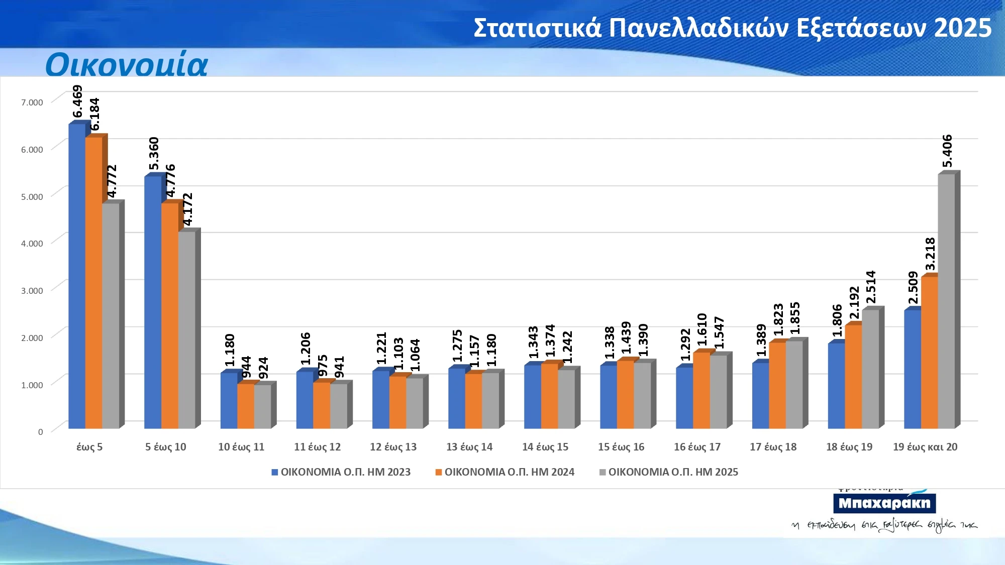 Στο 4ο επιστημονικό πεδίο, υπήρξε σημαντική μείωση των αριστούχων στην κλίμακα του 20, 19. «Σίγουρα αυτό θα επηρεάσει, από την άλλη όμως είχαμε μία έκρηξη των αριστούχων στο μάθημα της Οικονομίας όπου στην κλίμακα του 20, 19 εμφανίστηκαν 2.200 μαθητές περισσότεροι από πέρσι που πέτυχαν το απόλυτο! Αυτό ξεκάθαρα οφείλεται στο ότι τα θέματα ήταν πολύ προβλέψιμα και βατά. Ίσως οι Οικονομικές Σχολές να εμφανίσουν μία ανοδική τάση, από την άλλη όμως η Πληροφορική και τα Μαθηματικά κρατάνε το επίπεδο της διακύμανσης», σημειώνει.