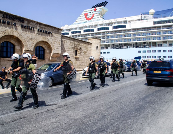 Οι αστυνομικές και λιμενικές Αρχές είχαν λάβει μέτρα καθώς οι κινητοποιήσεις οργανώθηκαν μέσω διαδικτύου. Δύο διμοιρίες των ΜΑΤ είχαν παραταχθεί εντός και εκτός του λιμανιού, για το ενδεχόμενο να προκληθούν εντάσεις ανάμεσα στους τουρίστες και στους διαδηλωτές.