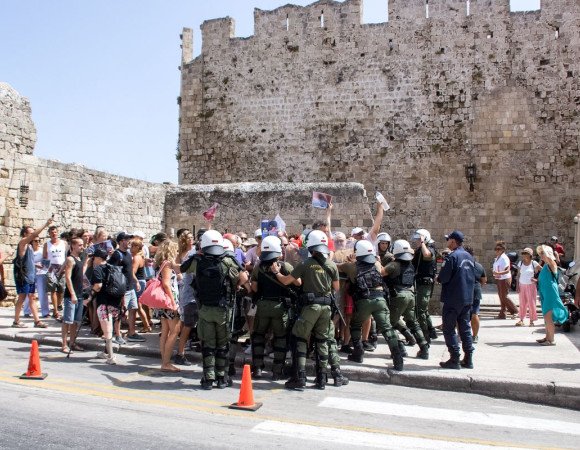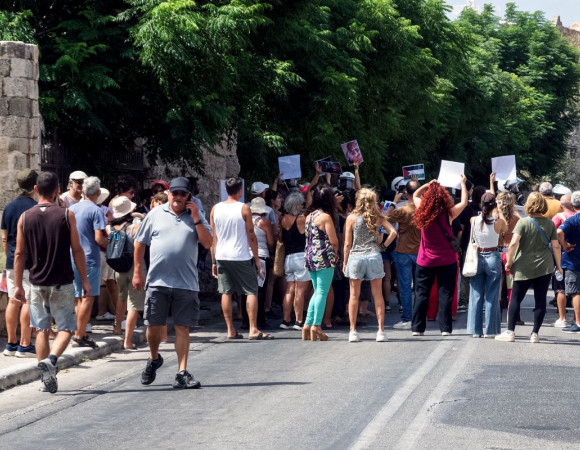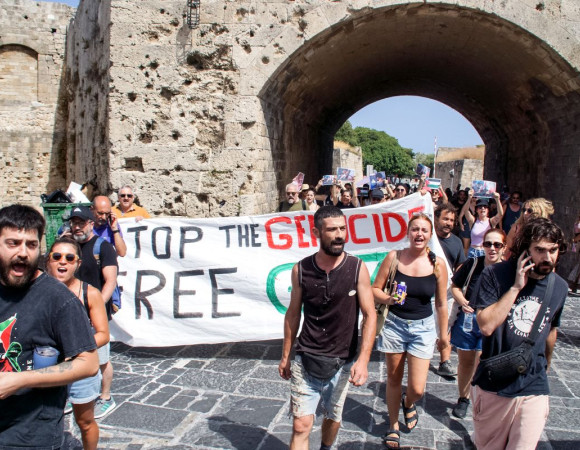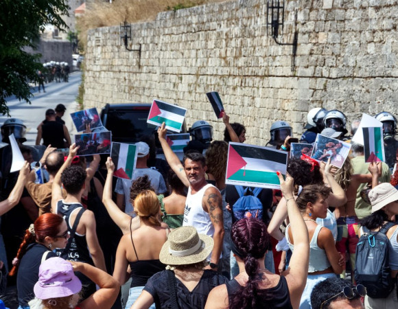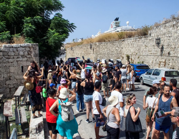 Ένταση επικράτησε σήμερα το πρωί, Δευτέρα στο λιμάνι της Ρόδου, όταν κάτοικοι του νησιού συγκεντρώθηκαν στο σημείο για να διαμαρτυρηθούν για την άφιξη ενός κρουαζιερόπλοιου που μετέφερε πάνω από 650 Ισραηλινούς, με φόντο τις απάνθρωπες συνθήκες που έχει προκαλέσει το Ισραήλ στους Παλαιστίνιους της Γάζας.