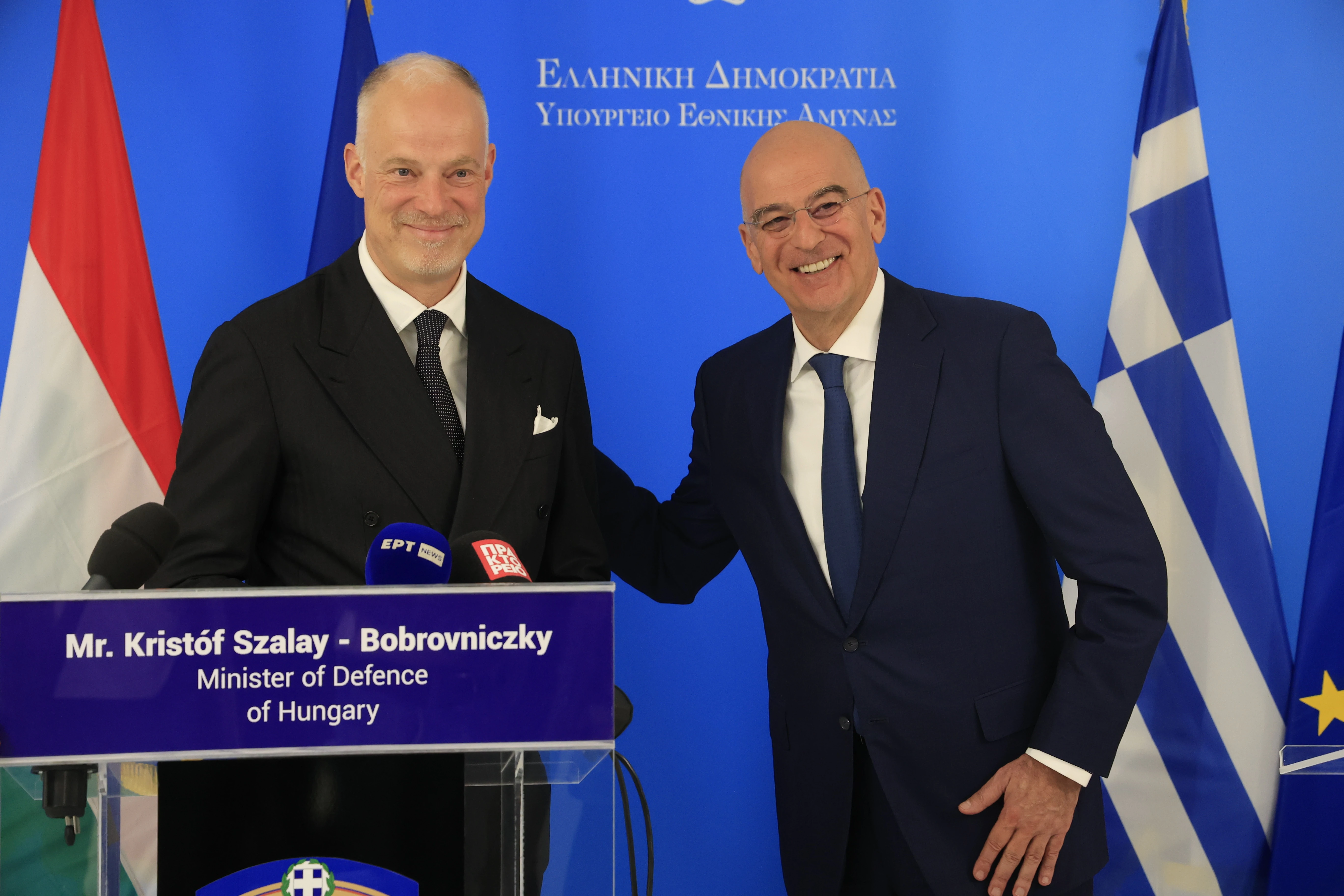 Κύριε Υπουργέ, αγαπητέ Κristof, αύριο θα έχεις την ευκαιρία να επισκεφτείς την έκθεση DEFEA – Defence Exhibition Athens. Η Έκθεση έχει ενισχυμένη ουγγρική παρουσία, κάτι το πολύ ευχάριστο, μας δίνει ευκαιρία για νέες συνεργασίες, για εμβάθυνση.