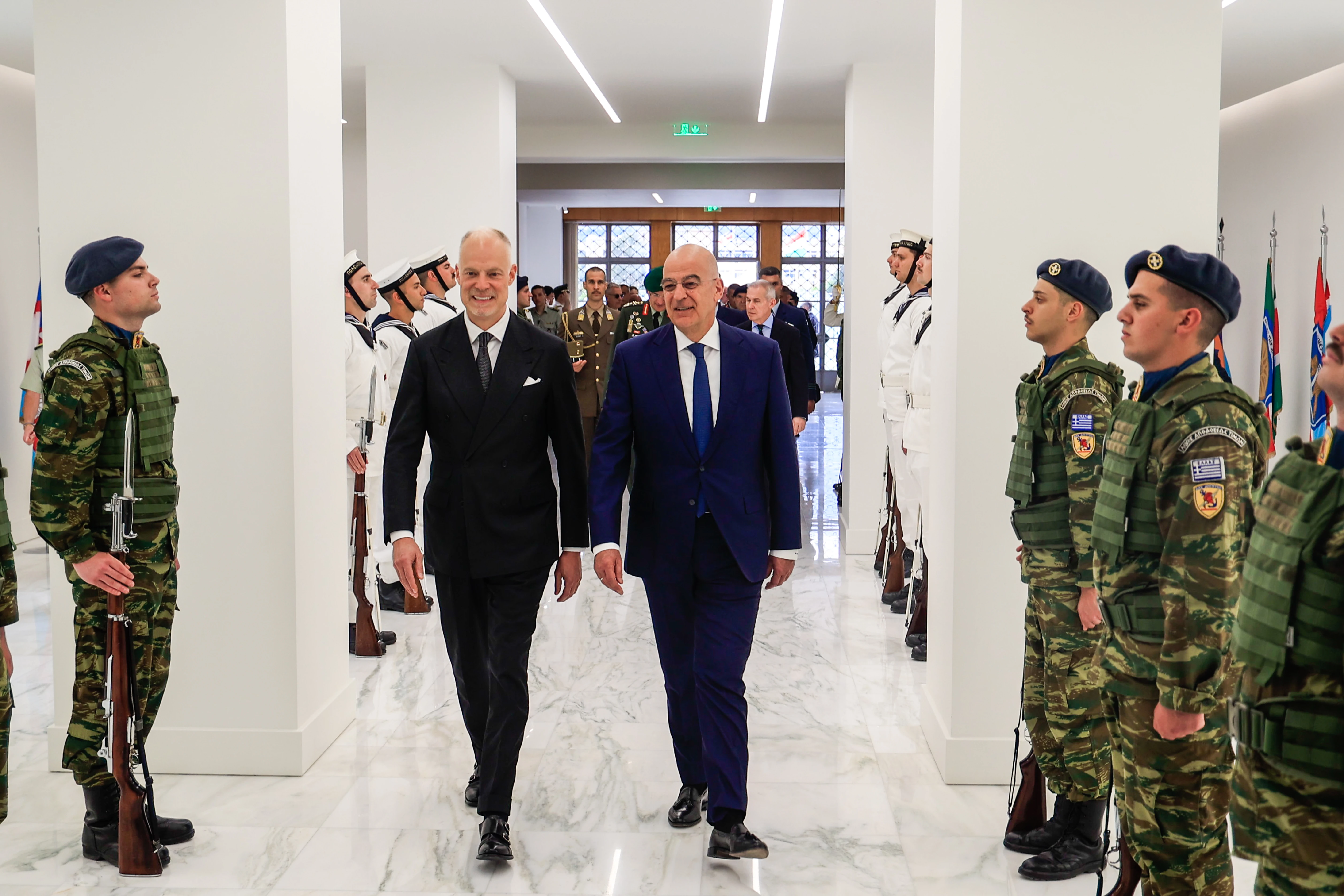 O υπουργός Εθνικής Άμυνας, Νίκος Δένδιας, συναντήθηκε σήμερα, Δευτέρα 5 Μαΐου 2025, στο Υπουργείο Εθνικής Άμυνας, με τον υπουργό Άμυνας της Ουγγαρίας Kristóf Szalay-Bobrovniczky, ο οποίος πραγματοποιεί επίσημη επίσκεψη στην Ελλάδα.