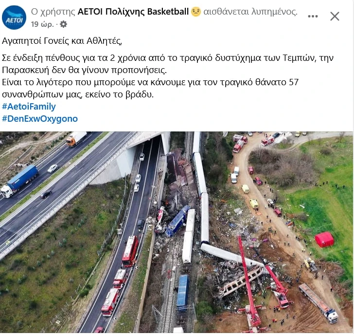 Η ελληνική κοινωνία ετοιμάζεται να τιμήσει τη μνήμη των 57 θυμάτων του σιδηροδρομικού δυστυχήματος στα Τέμπη και ο ελληνικός αθλητισμός δεν θα μπορούσε να είναι απών.