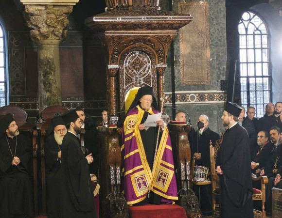 «Ο ναός αυτός της Αγίας Σοφίας γίνεται σήμερα αντίλαλος μνήμης, ζωντανό σύμβολο της Θείας Σοφίας. Σήμερα αγαπητέ Πατριάρχα χοροστατείτε εν ίδιον τρόπον. Όχι μόνο γιατί ο ναός αυτός είναι δημιουργημένος καθ' εικόνα της Αγίας Σοφίας της Κωνσταντινούπολης αλλά γιατί τόπος του οικουμενικού Πατριαρχείου είναι κάθε τόπος προσευχής και εκκλησίας», ανέφερε μεταξύ άλλων ο μητροπολίτης.