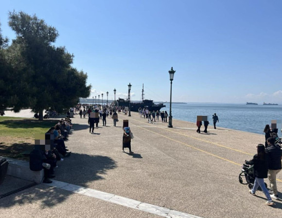 Η παραλία γέμισε από κόσμο ποδηλάτες στους ποδηλατόδρομους, ποικίλους πλανόδιους που πουλούσαν κάθε είδους πραμάτεια, αλλά και «καλλιτέχνες του δρόμου» που αυτοσχεδίαζαν είτε τραγουδώντας είτε παίζοντας μαριονέτες. Τον γενικό συνωστισμό επέτεινε και η παρουσία πολλών τουριστών τόσο και από τις γειτονικές χώρες όσο και από τη δυτική Ευρώπη που βρήκαν την ευκαιρία να απολαύσουν τον θεσσαλονικιώτικο ήλιο και την… άπλα της βόλτας στην παραλία της Θεσσαλονίκης.