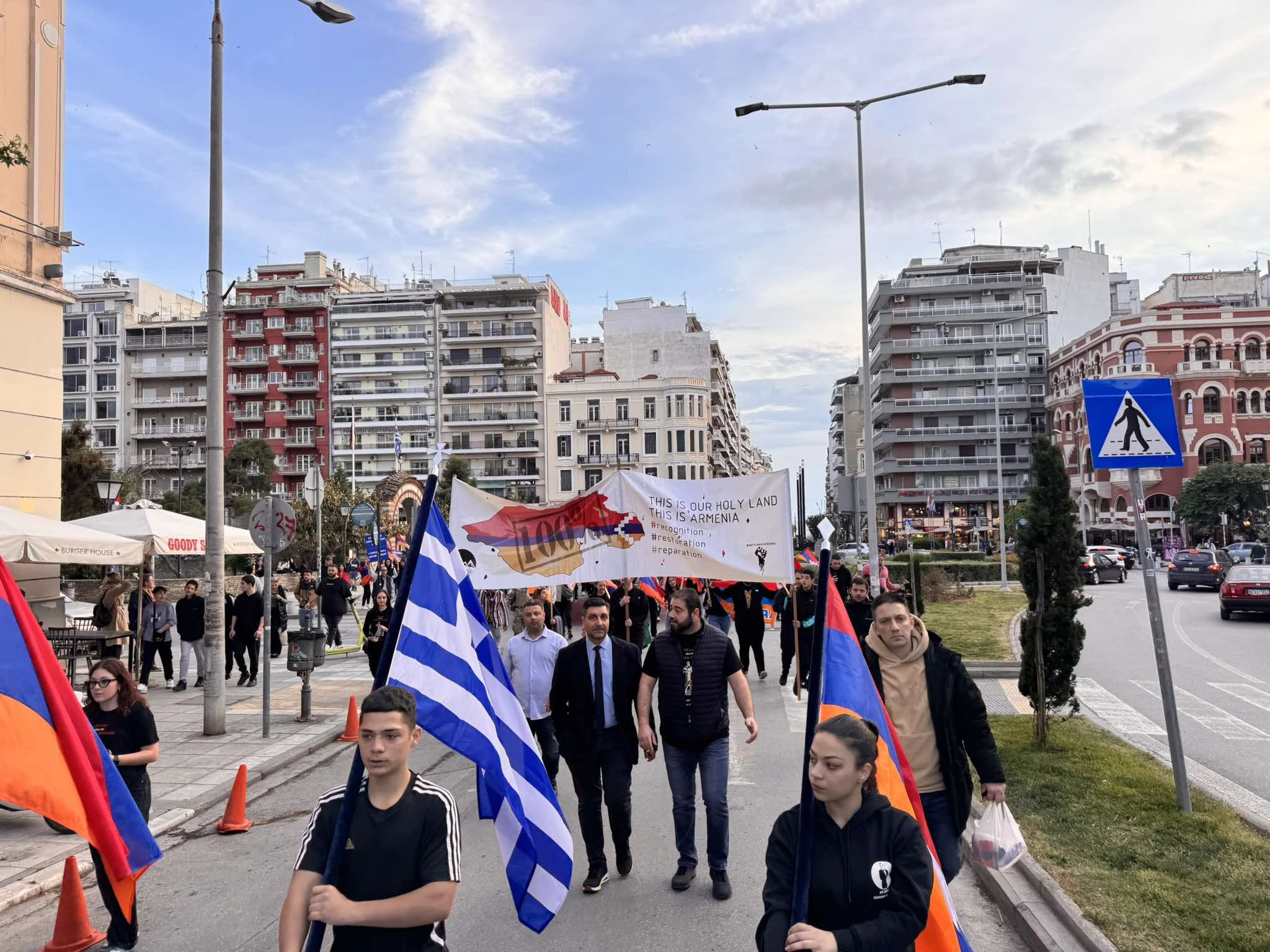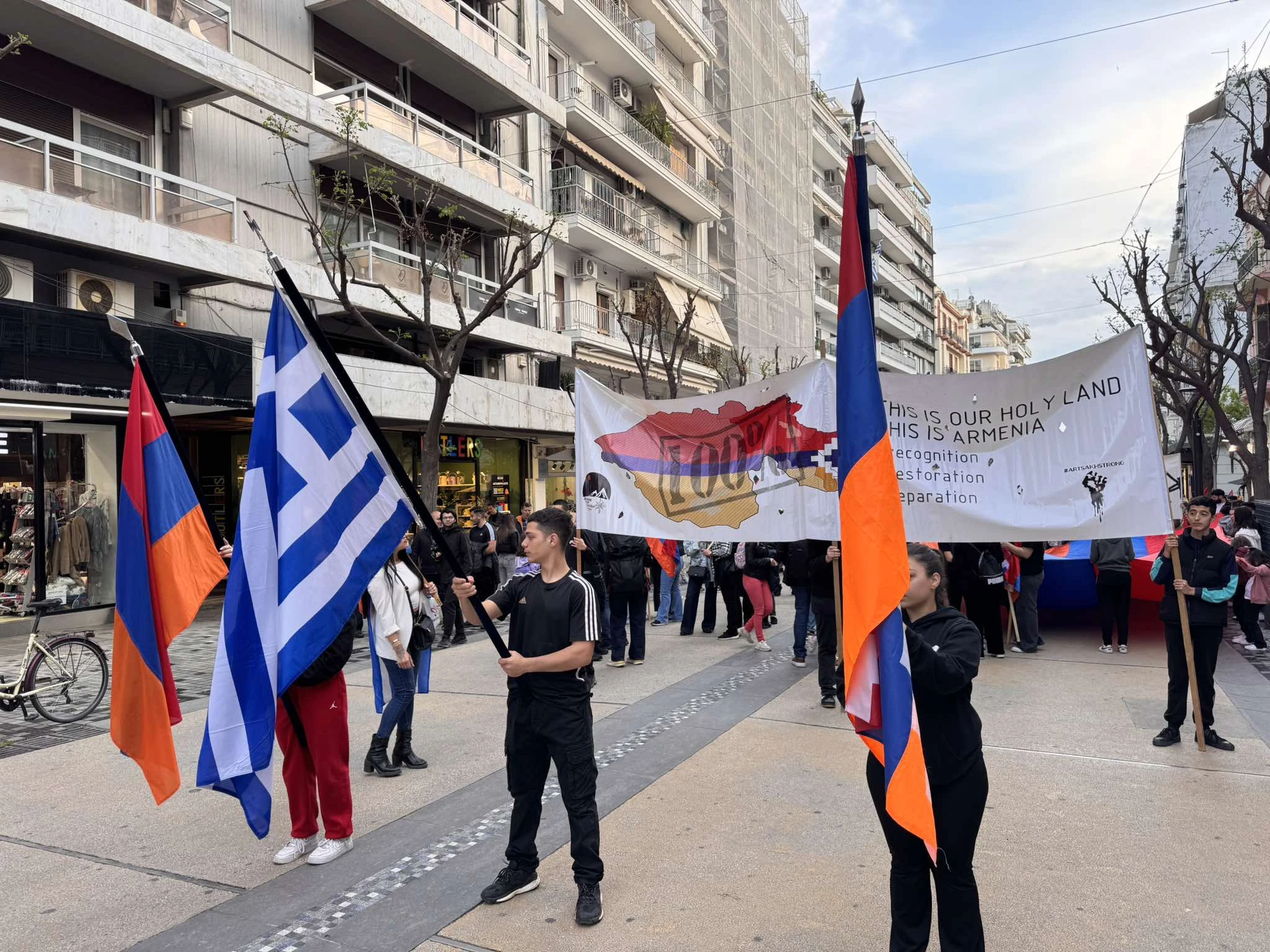 Με κεντρικό σύνθημα «η νέα γενιά δεν ξεχνά» δεκάδες μέλη της αρμένικης κοινότητας Θεσσαλονίκης πραγματοποιούν πορεία μνήμης με αφορμή την συμπλήρωση 110 ετών από την Γενοκτονία των Αρμενίων.