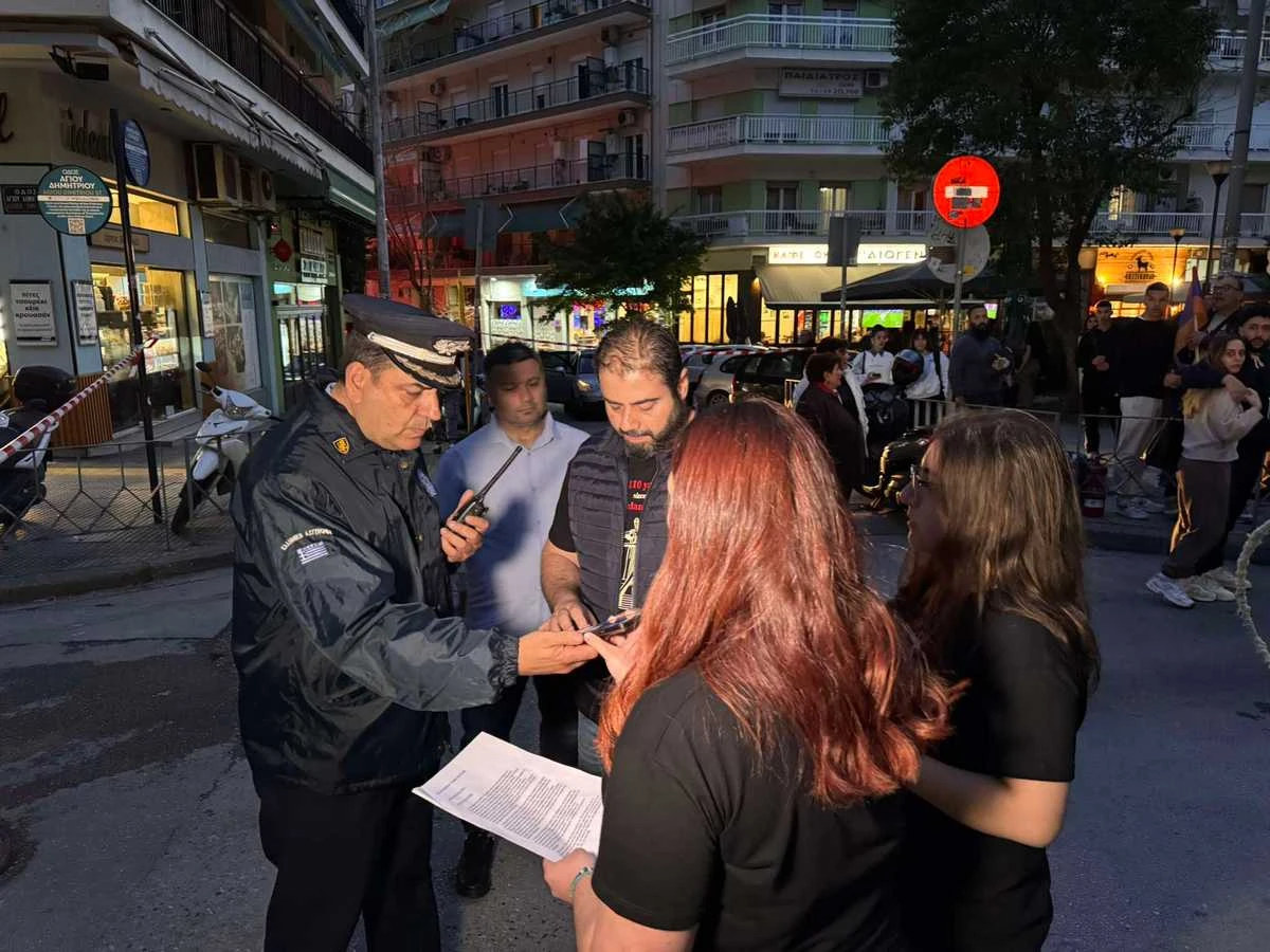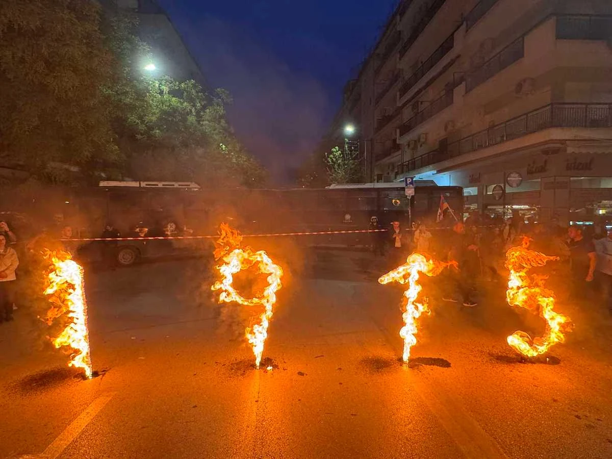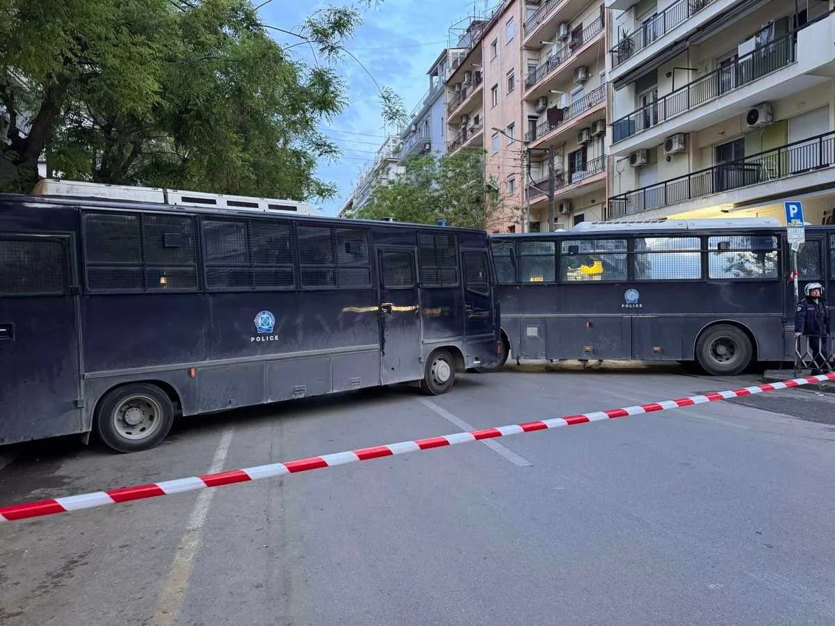 Πριν το τουρκικό προξενείο, στο ύψος της οδού Μίνωος, τοποθετήθηκε φραγμός με τις κλούβες των ΜΑΤ να σταματούν τους διαδηλωτές οι οποίοι φώναξαν συνθήματα κατά της Τουρκίας.