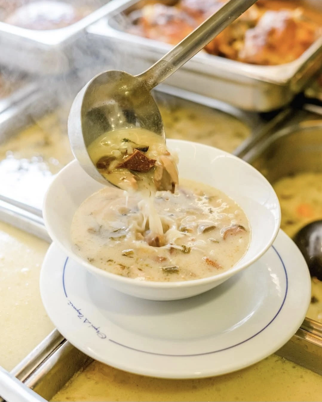 «Πέρυσι το Μεγάλο Σάββατο είχαμε ουρές μέχρι το απέναντι πεζοδρόμιο, μιας και το μεσημέρι κλείνουμε και θα δούμε αν θα μείνει και καμία μερίδα και για εμάς», λέει με χιούμορ ο ιδιοκτήτης του εστιατορίου από όπου έχουν περάσει διάσημοι καλλιτέχνες από Ελλάδα και εξωτερικό, όπως θυμάται τα λόγια του αείμνηστου πατέρα του Νίκου Τσαρούχα που έλεγε ότι η μαγειρίτσα τους έχει "ISO" με το στραγγιστό γιαούρτι αλλά και το …μυστικό ζωμό από τον διάσημο πατσά του ανάμεσα στα υλικά να την κάνει μοναδική σε γεύση.