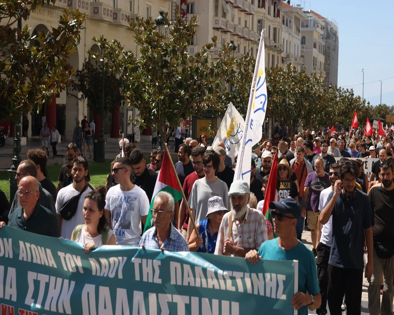 Πορεία αλληλεγγύης για την Παλαιστίνη, υπό τη διακριτική παρουσία της Αστυνομίας, πραγματοποιήθηκε σε κεντρικούς δρόμους της πόλης.