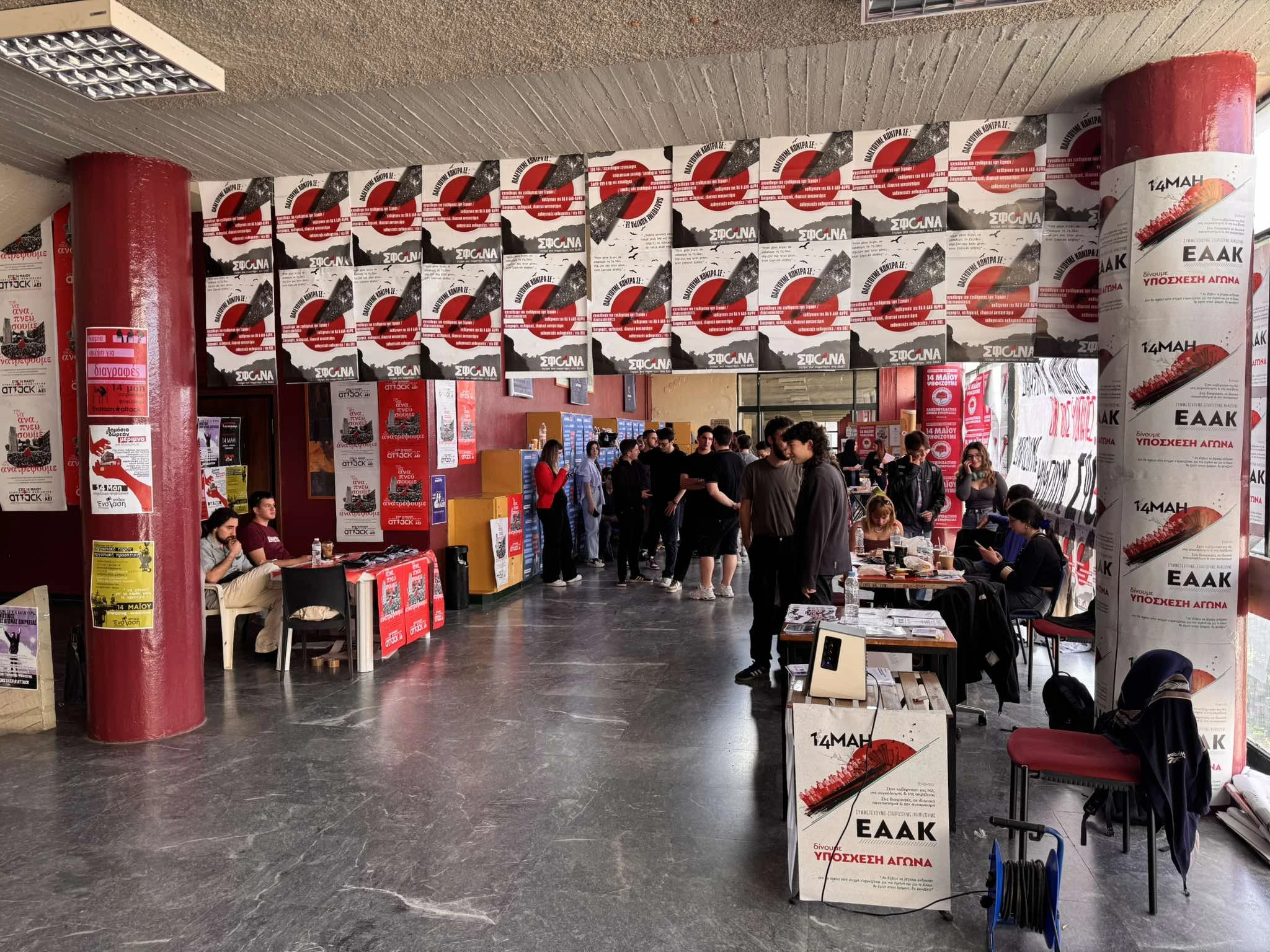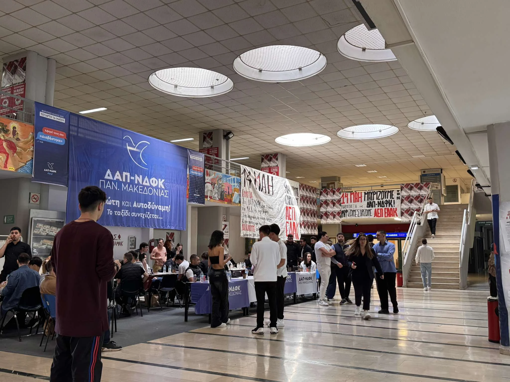 Στα σημεία που έχουν στηθεί τα τραπεζάκια από τις φοιτητικές παρατάξεις διανέμεται έντυπο υλικό με τις θέσεις και τις προτάσεις των υποψηφίων.