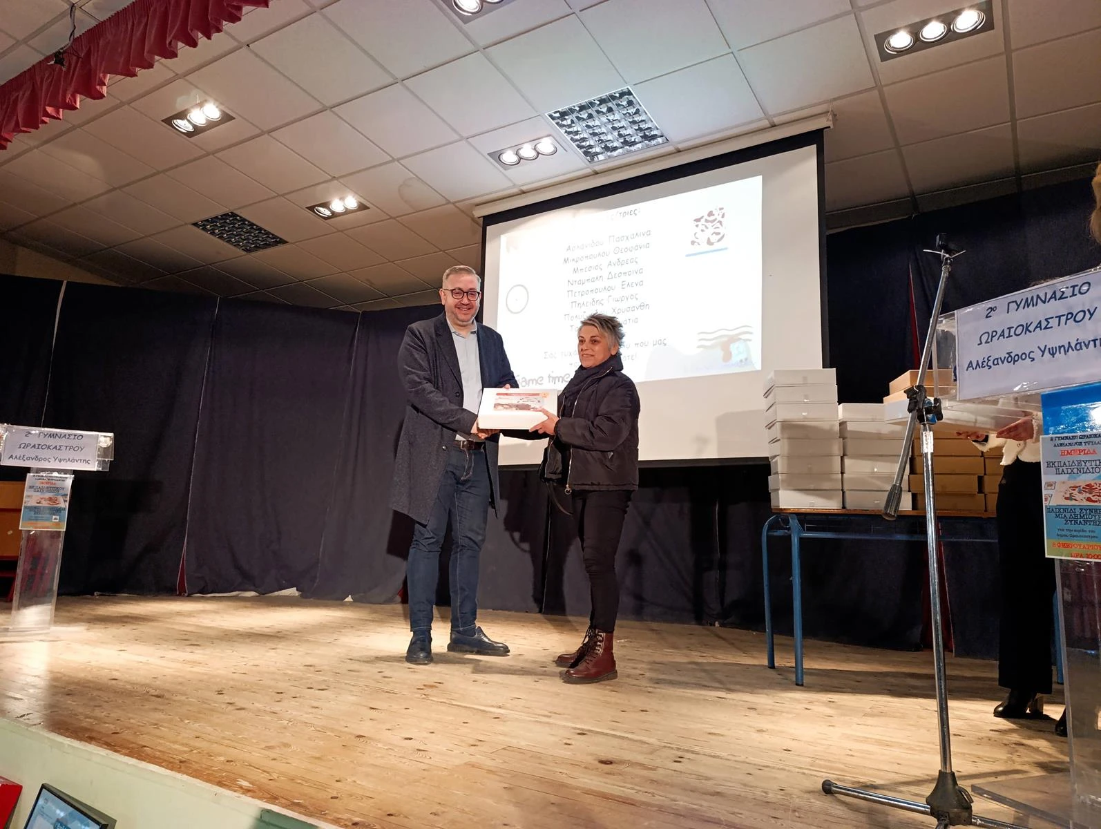 Στην εκδήλωση χαιρέτισαν επίσης ο διευθυντής του 2ου Γυμνασίου Ωραιοκάστρου, οι προϊστάμενοι Πρωτοβάθμιας και Δευτεροβάθμιας Εκπαίδευσης Δυτικής Θεσσαλονίκης, Σύμβουλος Παιδαγωγικής Ευθύνης, Σχολικοί Σύμβουλοι Ειδικοτήτων και εκπρόσωποι της Ένωσης Γονέων Δήμου Ωραιοκάστρου και του Συλλόγου Γονέων και Κηδεμόνων.