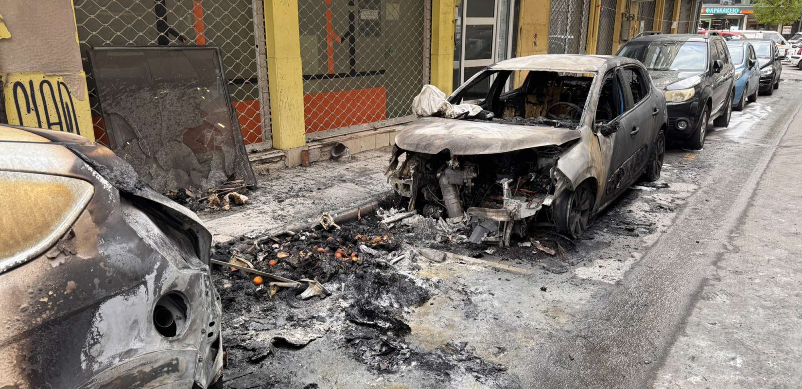 Οι φλόγες επεκτάθηκαν γρήγορα και σε παρακείμενα παρκαρισμένα οχήματα με αποτέλεσμα το ένα από αυτά να καταστραφεί ολοσχερώς και τα άλλα δύο να υποστούν υλικές ζημιές.