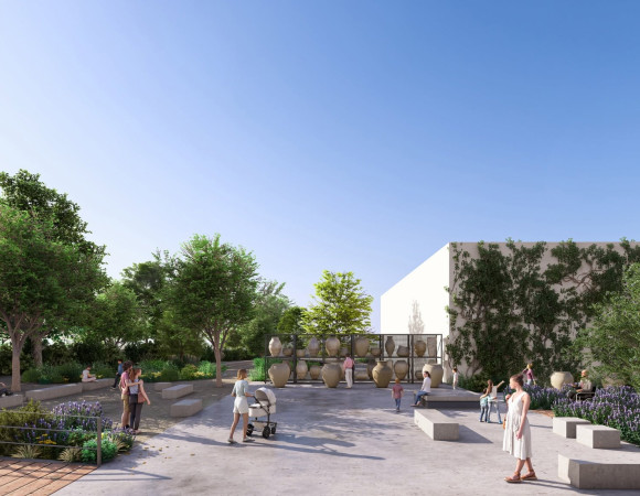 Ένας δημόσιος χώρος με ήπιες παρεμβάσεις, κυκλική κίνηση, μεσογειακή βλάστηση και ανοιχτές διαδρομές που αναδεικνύουν τη σχέση του Μουσείου με την πόλη και τη θάλασσα.