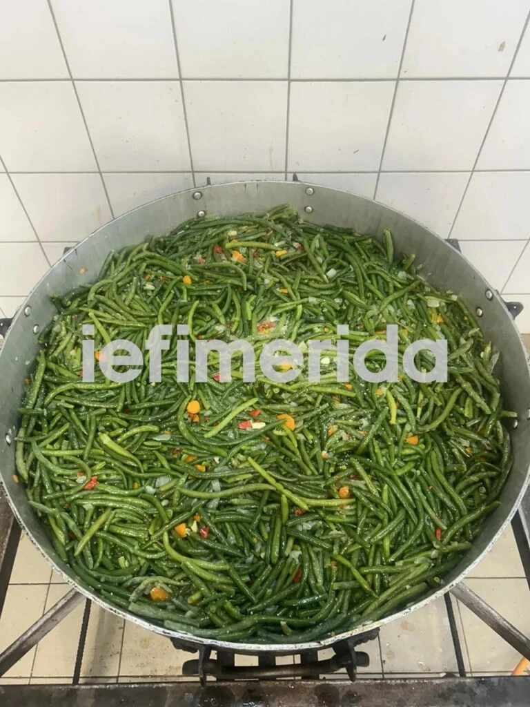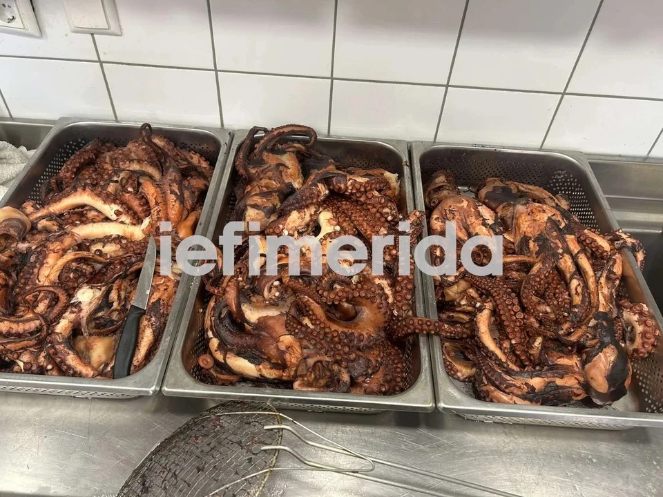 Χταπόδι, σουπιές και φασολάκια σιγομαγειρεύτηκαν σε μεγάλες κατσαρόλες και σερβιρίστηκαν με σαλάτες, ψωμί και ελιές.