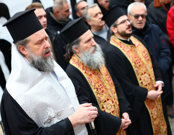 Επιμνημόσυνη δέηση μπροστά στη θύρα 4 του γηπέδου της Τούμπας τέλεσε ο Μητροπολίτης Θεσσαλονίκης Φιλόθεος τιμώντας τη μνήμη των ανθρώπων που «χάθηκαν» στο τροχαίο δυστύχημα στη Ρουμανία.