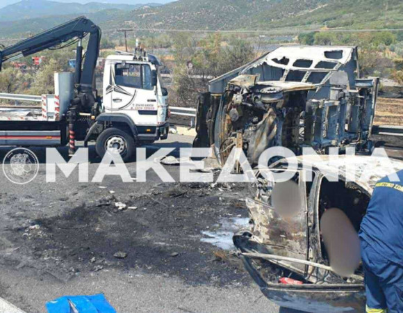 Σοκάρουν οι φωτογραφίες από το πολύνεκρο δυστύχημα που σημειώθηκε χθες το πρωί στην Εγνατία Οδό. Από την εκδήλωση της πυρκαγιάς μετά την σύγκρουση, απανθρακώθηκαν τρεις άνθρωποι, τα αυτοκίνητα κάηκαν ολοσχερώς και το σημείο της σύγκρουσης θύμιζε κρανίου τόπου.