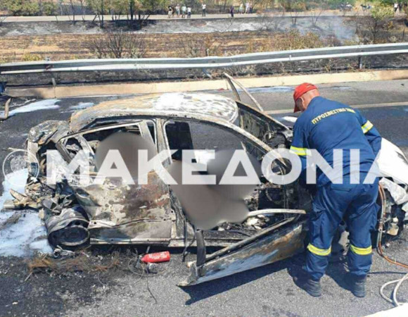 Στις αποκλειστικές φωτογραφίες του emakedonia.gr, βλέπετε το αυτοκίνητο που τυλίχθηκε στις φλόγες και σε αυτό επέβαιναν τα τρία άτομα που απανθρακώθηκαν. Οι φωτογραφίες είναι αμέσως μετά την κατάσβεση και ένας από τους πυροσβέστες αντικρίζει στο σημείο του δυστυχήματος τις τρεις απανθρακωμένες σορούς.