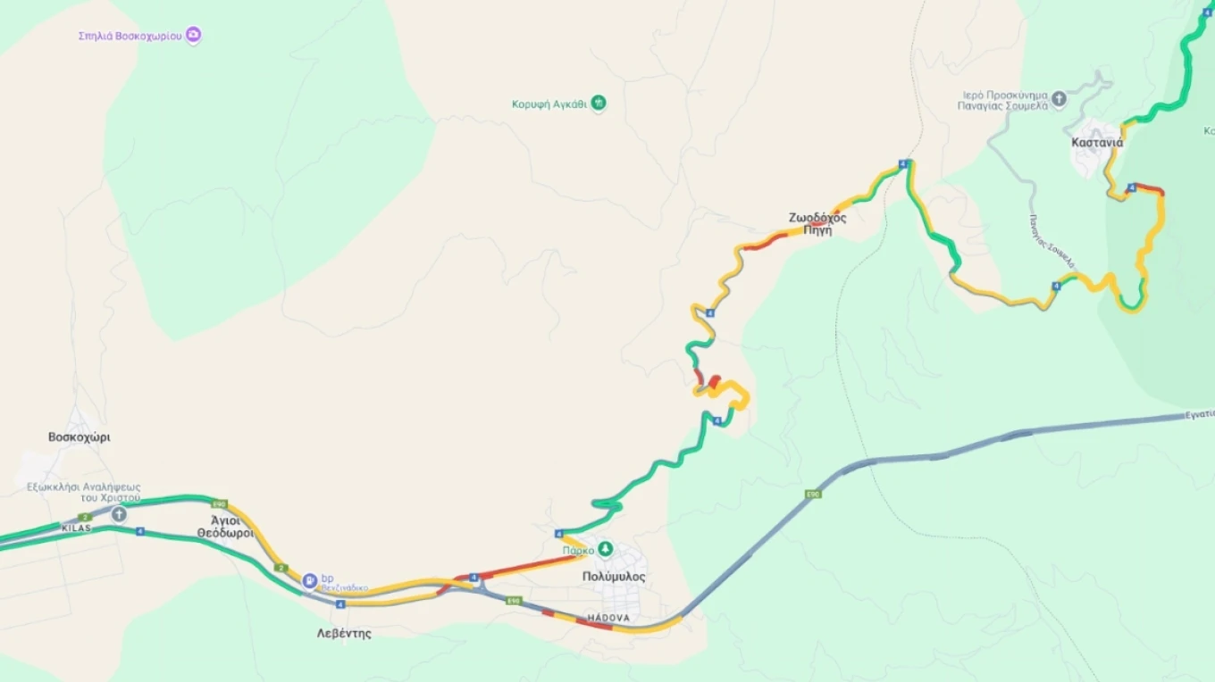 Σύμφωνα με την ΕΛΑΣ, η κυκλοφορία από Βέροια προς Κοζάνη διεξάγεται μέσω της Καστανιάς (παλιά εθνική οδός Βέροιας - Κοζάνης).
