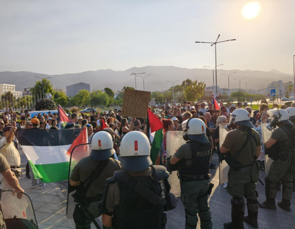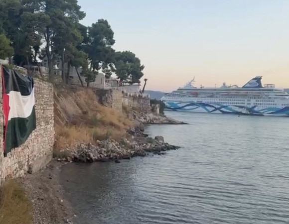 Συγκεντρώσεις διαμαρτυρίας μπροστά στις εξόδους του εμπορευματικού λιμανιού του Βόλου, όπου κατέπλευσε κρουαζιερόπλοιο με Ισραηλινούς τουρίστες, πραγματοποιήθηκαν σήμερα (13/8) από πολίτες στην παρουσία τουριστών από το Ισραήλ στην πόλη.